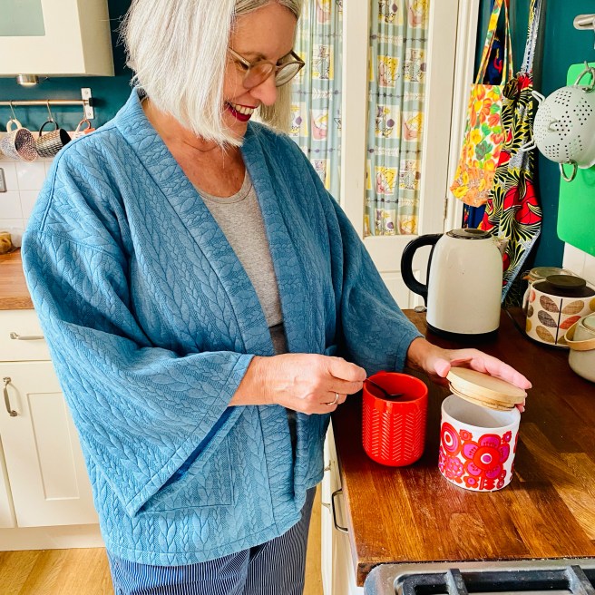 Here is my lovely fam, Becky (fave sis no 2), Patsy (mum), Nilly (niece), Anna (fave sis no 1) and me (big sis), all modelling a kimono at my mums special birthday get together (she’s 21 yet again!).