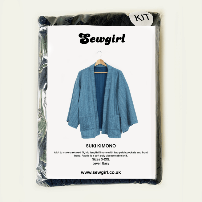The pictures above show a version that I’ve made from glorious floral printed viscose fabric, Ive lengthened the body by adding an extra 25cm and also made the sleeves longer by adding an extra 10cm on the pattern. Make sure that if you do extend the body length, that you also cut the band pieces in the same extended length measurement, so for example, if you make a size Med kimono but use a size XL in length, then cut out two size XL band pieces or, if you lengthen the body by 25cm, then add another 25cm to each band length too ….simple!