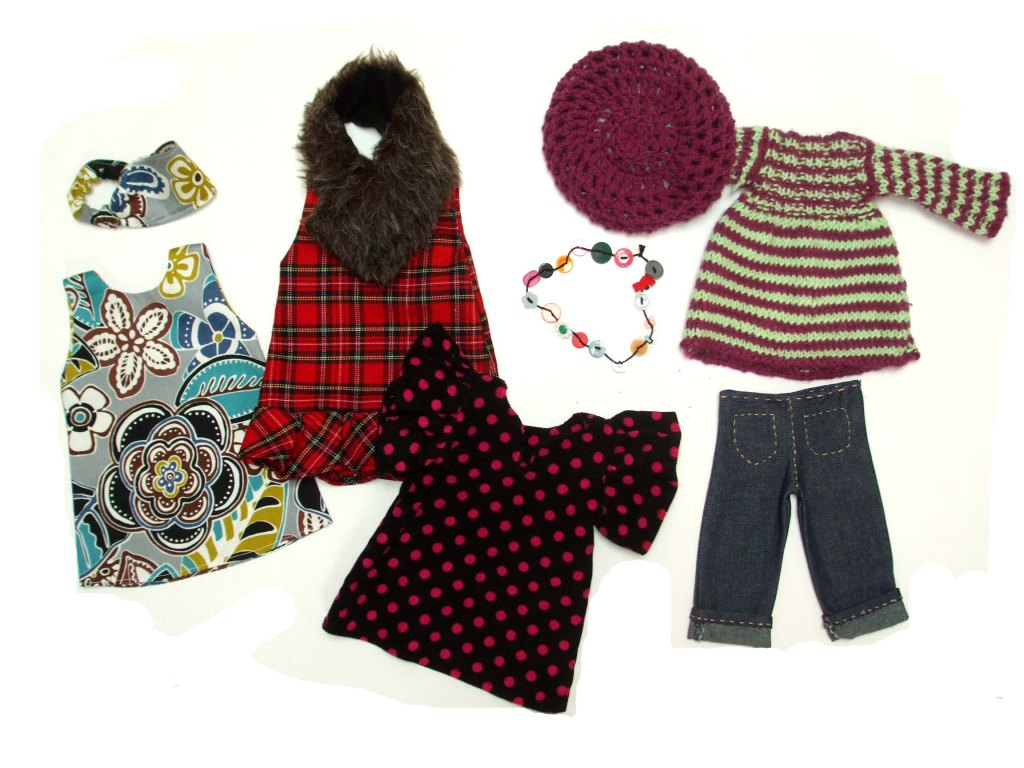 Cut out the pieces, sew her up, stuff her, add hair and make her clothes from the templates that you can download for free from this page.
