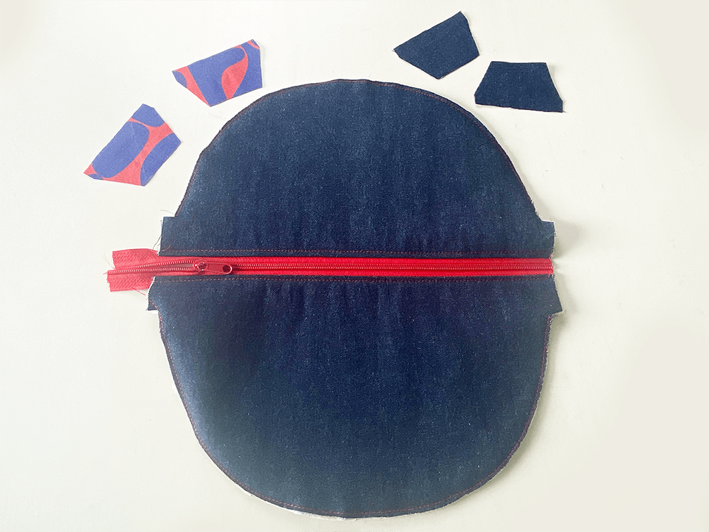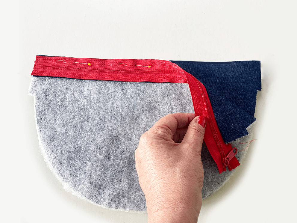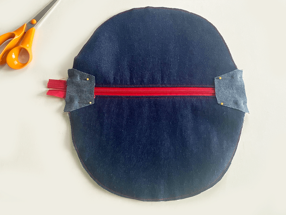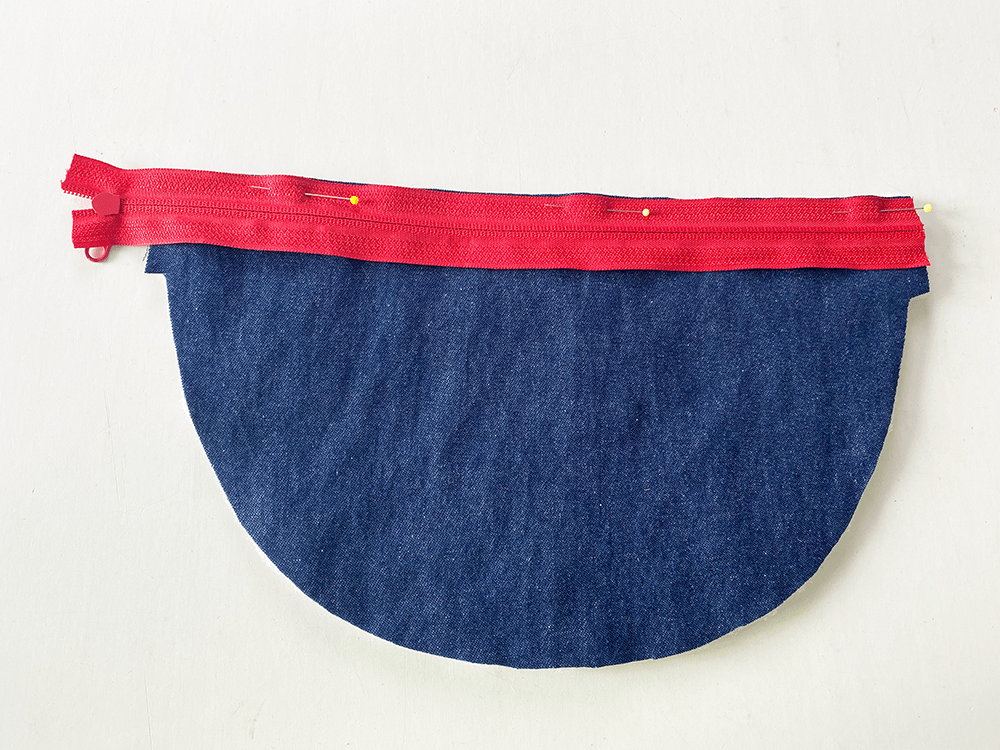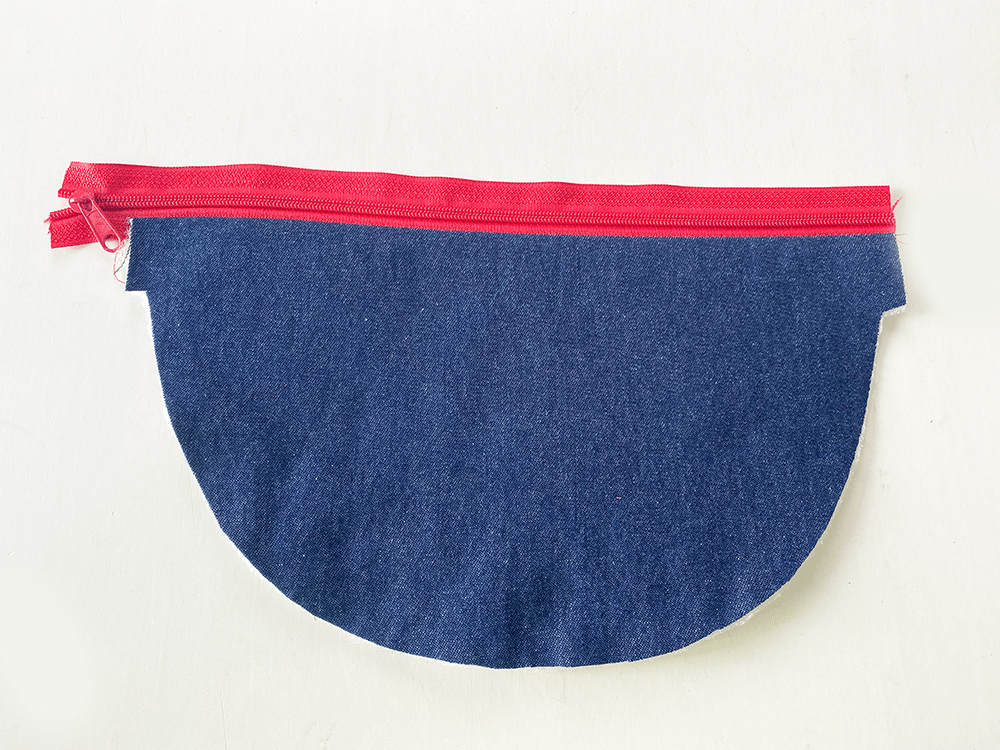 Then repeat with the remaining lining piece and the other side of the zip on the opposite side.