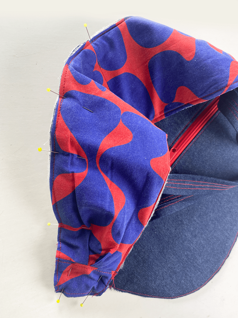 Pin the Outer Tabs at each side. Ensure the zip open ended sides are together.