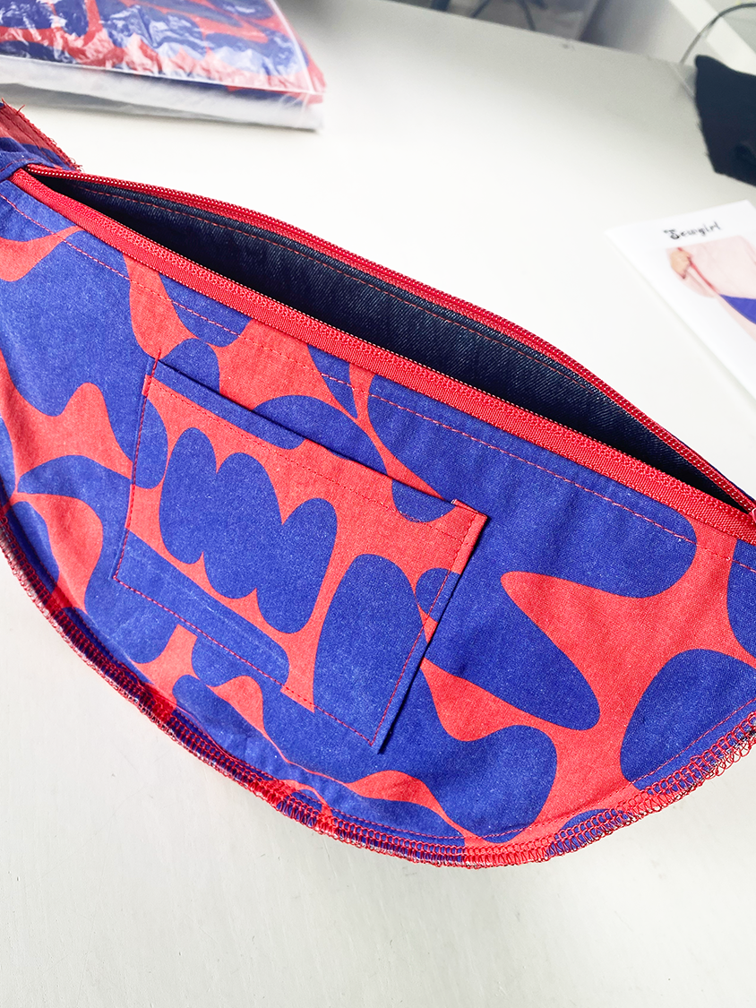 The bag is left with two raw edges inside which can be finished with an overlocker or, for a much neater finish, use a length of bias binding.
