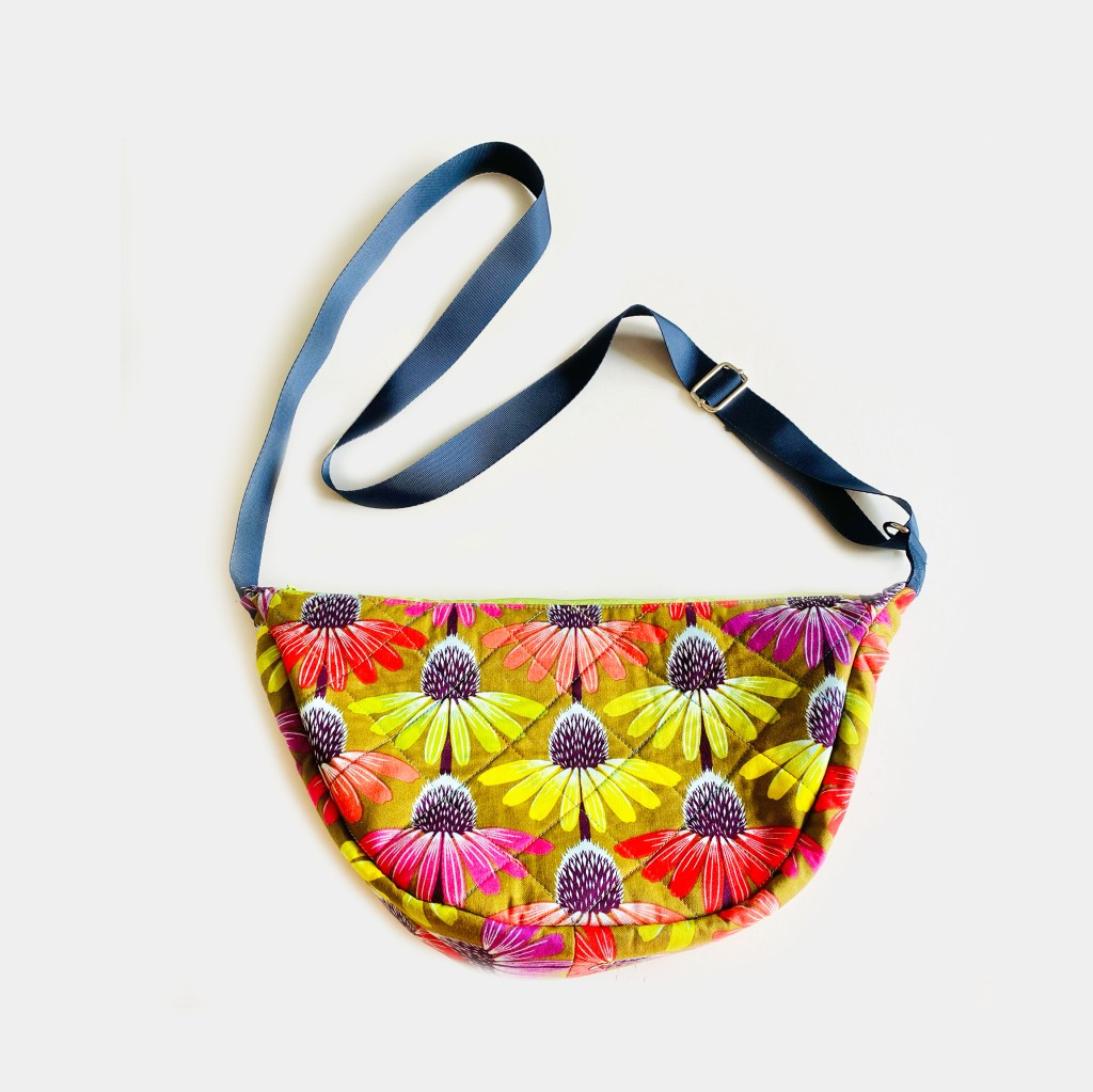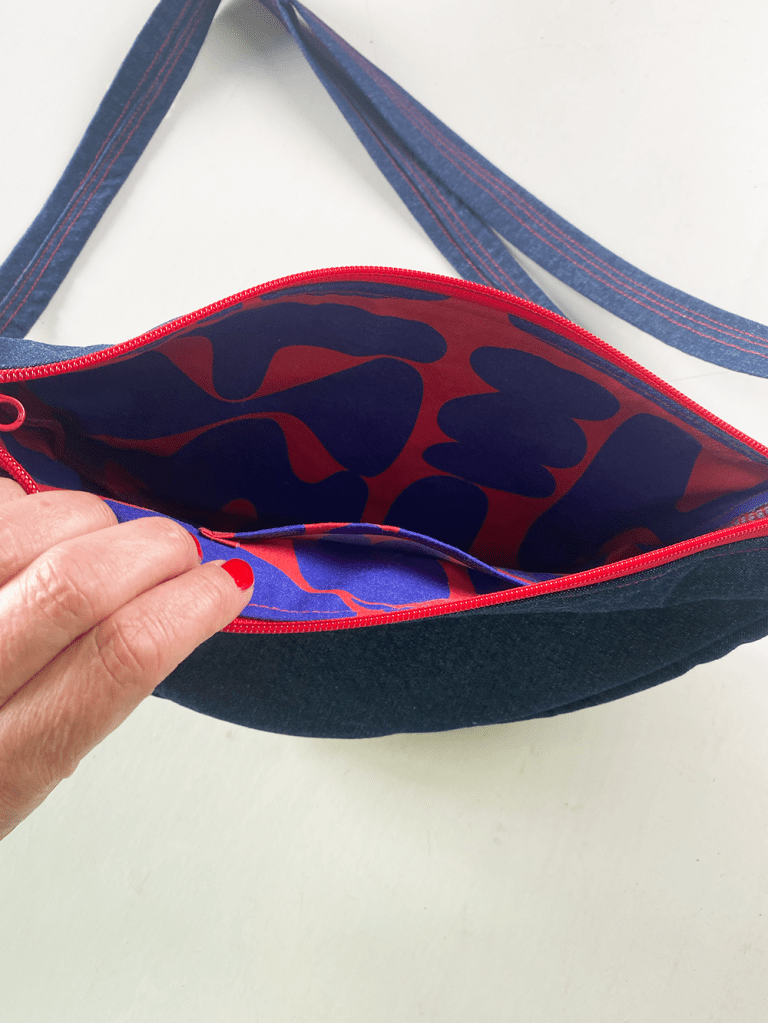 This useful, ergonomic bag, designed by Sewgirl, is great for everyday use. Its surprisingly roomy inside, with a zip fastening, inner pocket and a long adjustable strap. Make in your favourite gorgeous printed cotton fabrics or simple plain denim, corduroy, velvet or cotton with funky patterned lining.