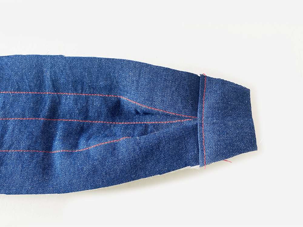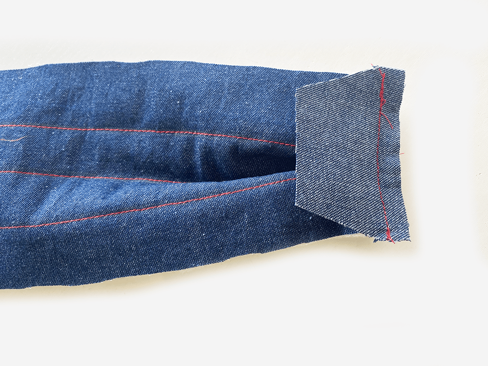 Stitch across the Tab. Press outwards. Topstitch across the Tab on the Right right close to the seam line.
