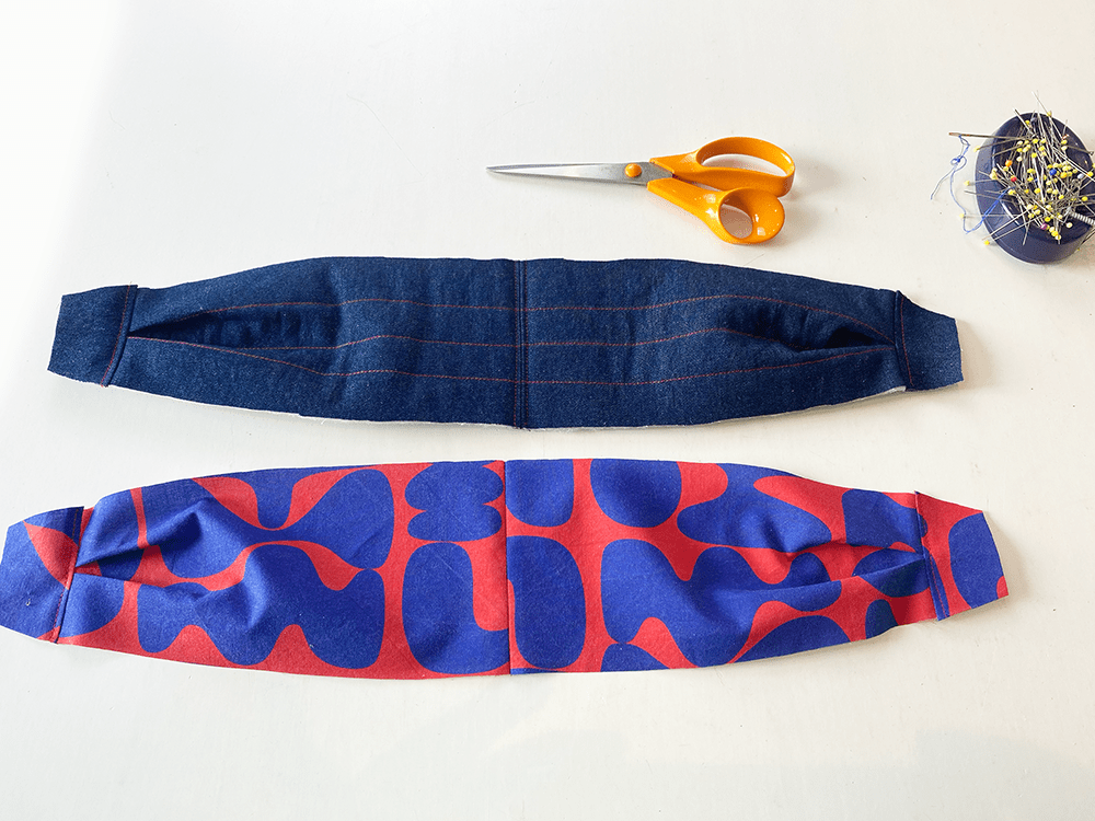 So you should have two pleated base sections: one in Outer fabric and one in Lining. Both with their tabs attached.