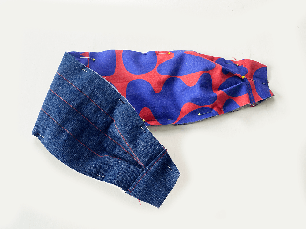Pin the Lining Tabs to the Lining inside. Sew. Press the Tabs outwards.