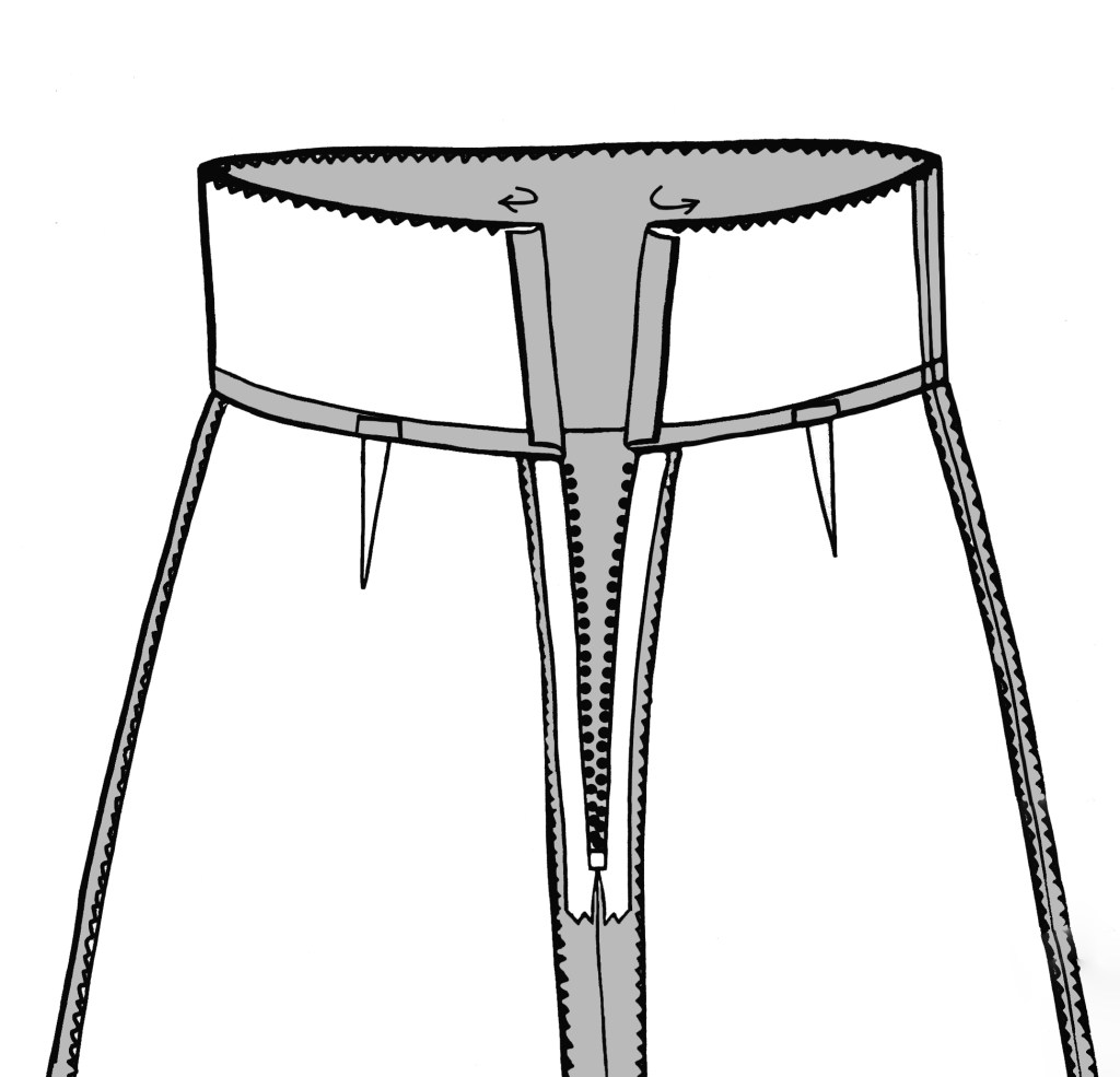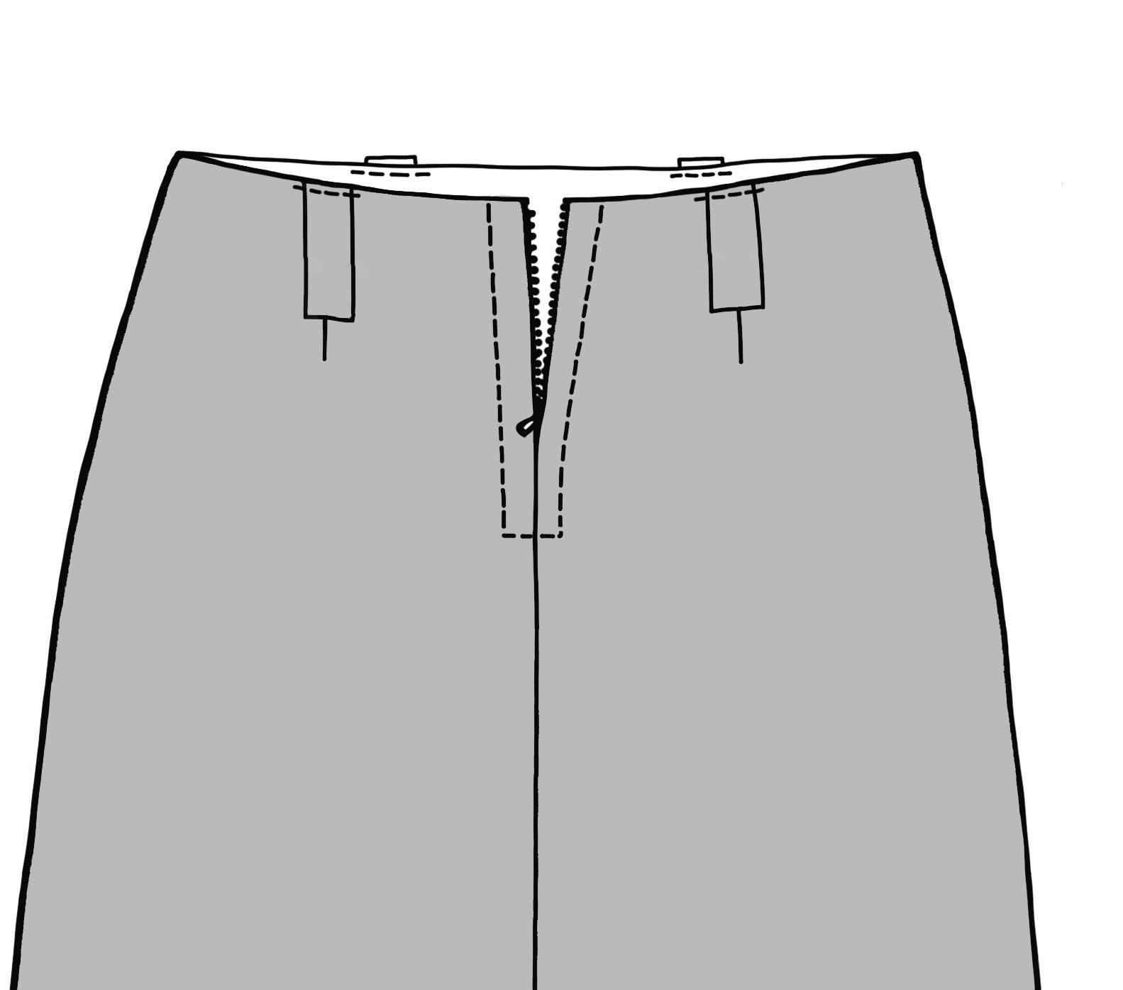 All pattern pieces have notches which should be transferred to the pattern after cutting out. The zip, tabs, and side slit positions should be marked on the Front with notches or an invisible marker pen.