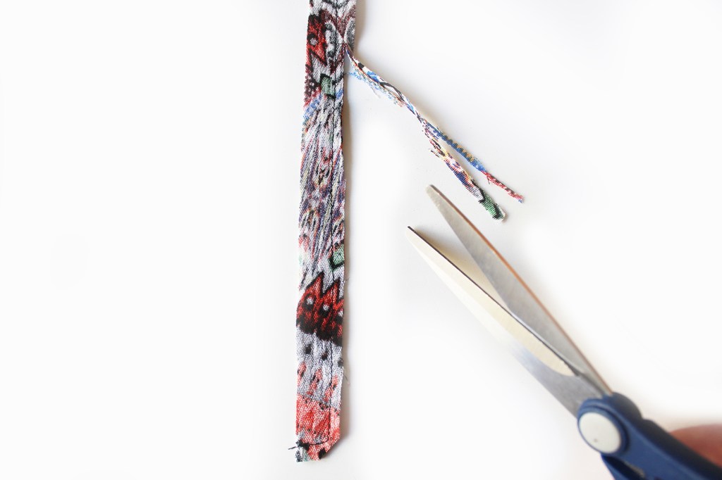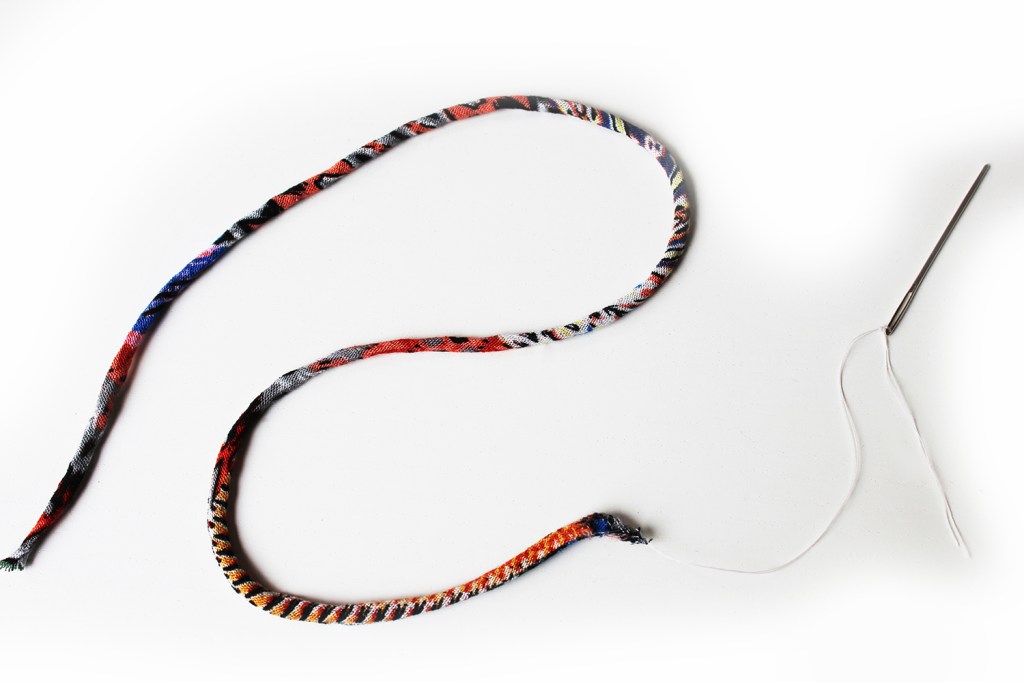 The Shoestring Tie is closed at each end with an opening in the centre for turning.