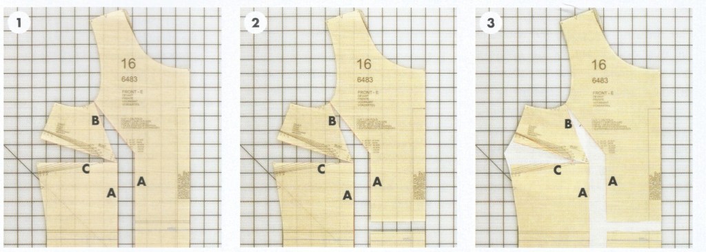 The dart is adjusted in exactly the same way as increasing the dart but in reverse. Secure the overlap sections with sticky tape.